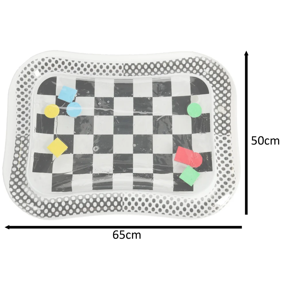 Mata wodna sensoryczna dmuchana dla niemowląt to doskonały sposób na rozwijanie zmysłów Twojego maluszka. Jej kontrastowy, czarno-biały wzór w szachownicę przyciągnie uwagę i zachęci do zabawy. Wymiary maty to XXL 65 x 50 cm, co zapewnia odpowiednią przestrzeń do eksploracji.