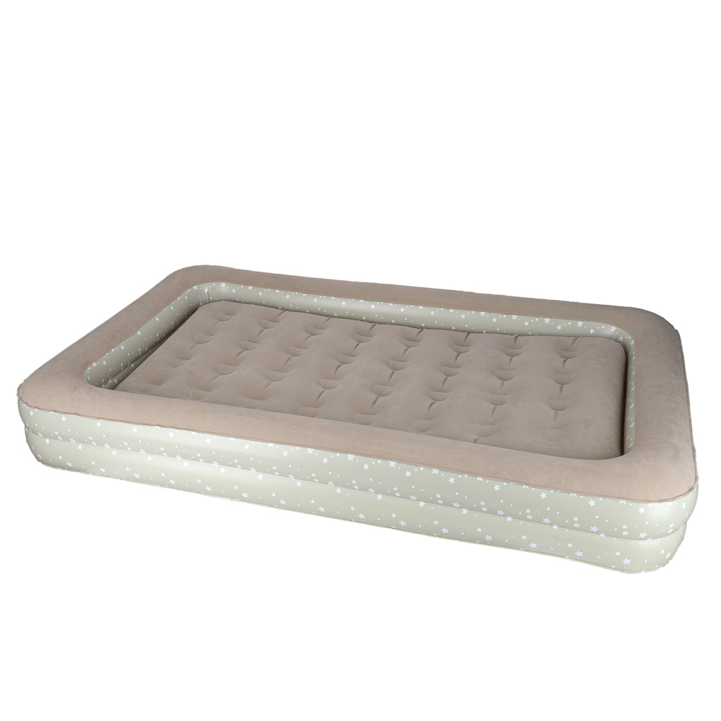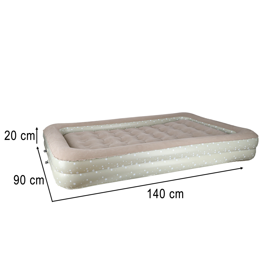 To dwuczęściowe dmuchane łóżko jest idealnym rozwiązaniem dla dzieci. Zapewnia komfortowy sen oraz łatwość w użyciu dzięki dołączonej ręcznej pompce. Zestaw zawiera wszystko, co potrzebne: materac, pompkę z trzema rodzajami zaworów, łatkę naprawczą oraz instrukcję obsługi.
