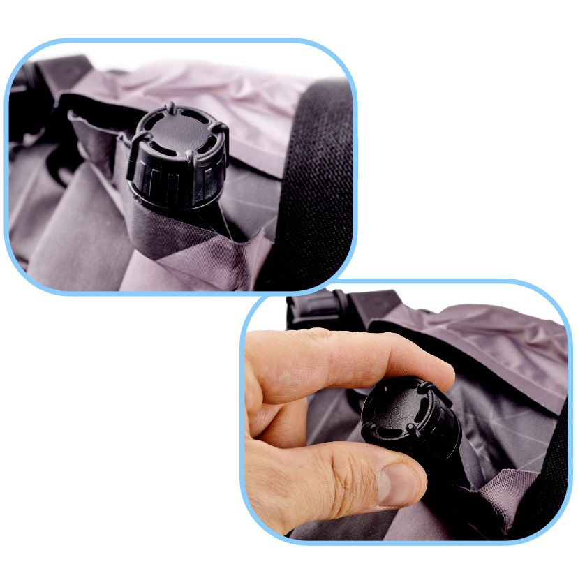Górna część materaca jest grubsza i działa jak poduszka, co pozwala zaoszczędzić miejsce w bagażu. Napompowanie materaca jest szybkie i łatwe, a każda część może być dostosowana do pożądanej twardości.