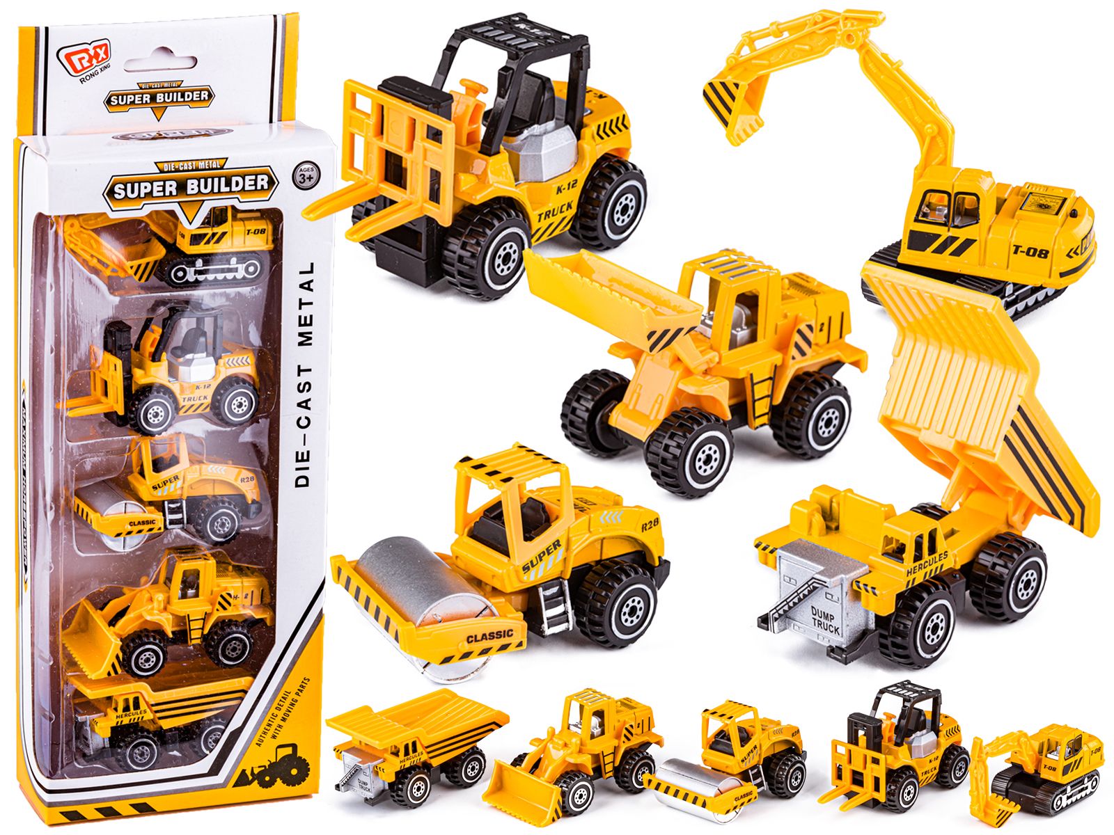Każdy pojazd z kolekcji jest wyjątkowy. Jak na każdym placu budowy tak i w naszym zestawie nie zabrakło koparki, spycha, wywrotki, walca czy wózka widłowego.