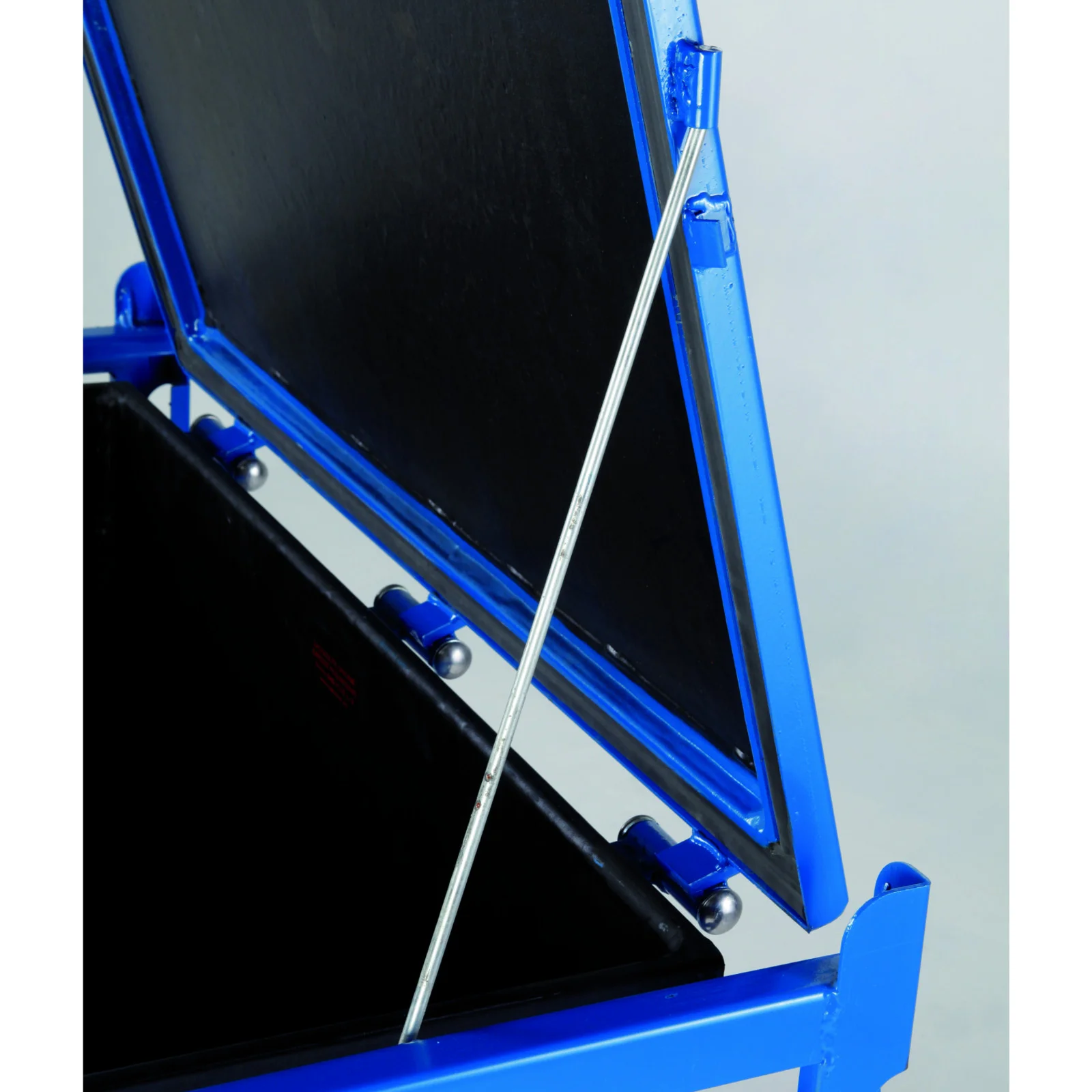 Trwała ocynkowana blacha stalowa zapewnia długowieczność produktu, a wnętrze wyłożone kwasoodporną gumą gwarantuje bezpieczeństwo użytkowania. Możliwość piętrowania do trzech warstw pozwala na oszczędność miejsca.