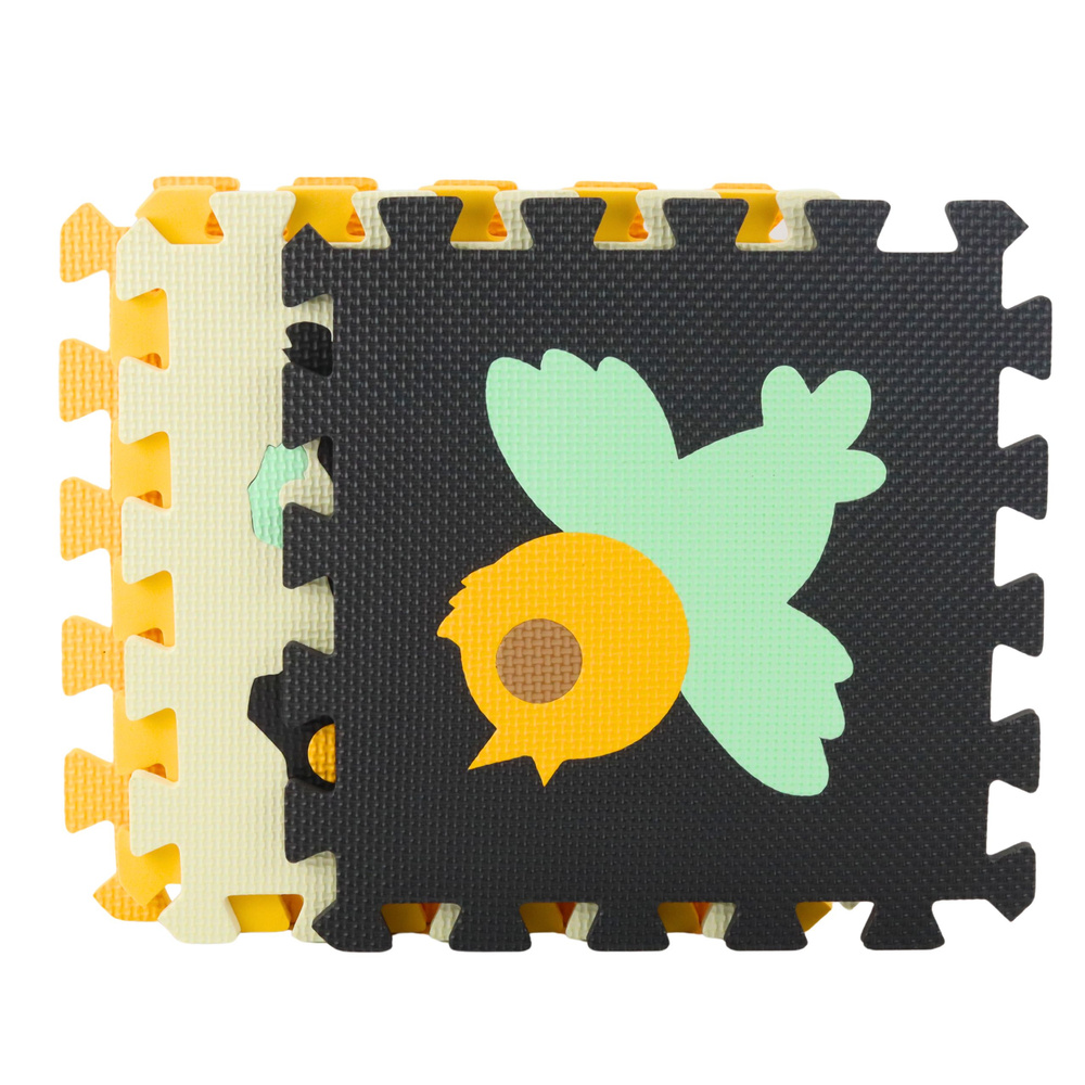Kontrastowe połączenie kolorów brązowego, zielonego, pomarańczowego, beżowego i czarnego nadaje macie wyjątkowego wyglądu i sprawia, że doskonale komponuje się z wnętrzem dziecięcego pokoju. Dodatkową atrakcją są wyjmowane kształty zwierząt, które nie tylko przyciągają uwagę, ale również pełnią funkcję edukacyjną. Dziecko uczy się rozpoznawania form i kolorów, ćwiczy zdolności manualne, koordynację wzrokowo-ruchową oraz logiczne myślenie.