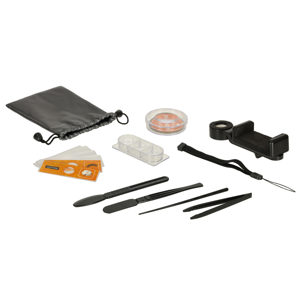 Mikroskop jest stabilny, wyposażony w lampkę LED, co zapewnia odpowiednie oświetlenie próbek. Dwa poziomy powiększenia (100x i 250x) umożliwiają dokładne obserwacje. Zestaw zawiera dwa gotowe szkiełka z próbkami oraz cztery puste szkiełka do samodzielnego przygotowania. Dodatkowe akcesoria, takie jak pęseta i plastikowy skalpel, ułatwiają eksperymentowanie.