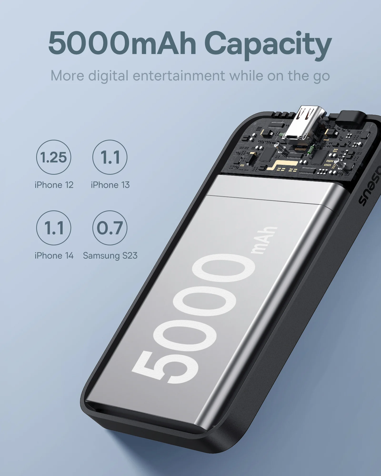 Mini powerbank Baseus to niezastąpione akcesorium w codziennym życiu, zawsze gotowe do użycia, które łączy funkcjonalność z mobilnością.