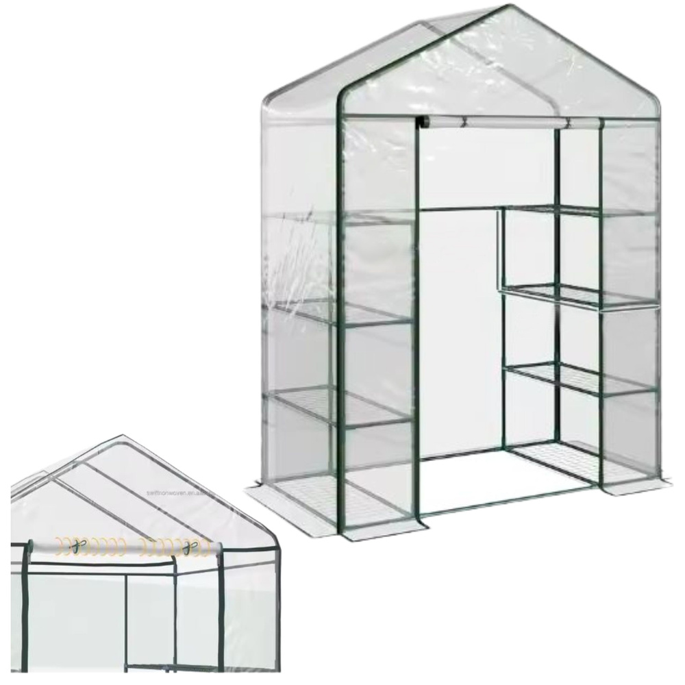 Model ten został wyposażony w 4 półki boczne i 2 wolne przestrzenie na ziemi, które umożliwiają przechowywanie wyższych donic lub uprawę roślin pnących. Praktyczne drzwi zapinane na zamek błyskawiczny zapewniają łatwy dostęp do wnętrza, a konstrukcja złączek „T” pozwala na szybki i intuicyjny montaż bez użycia narzędzi.