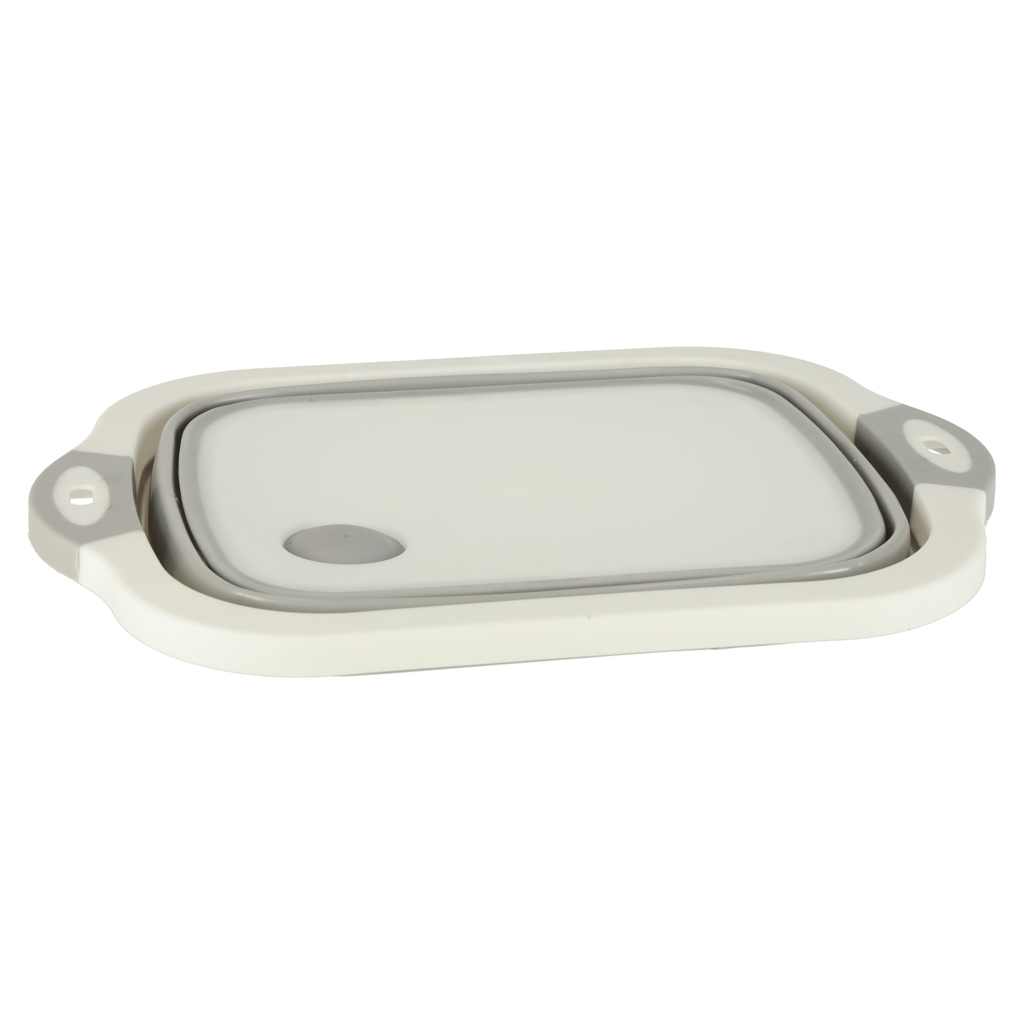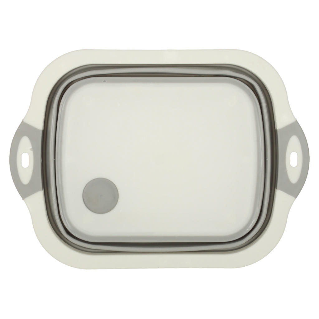 Po złożeniu zajmuje minimalną przestrzeń w szafce lub plecaku. Po rozłożeniu staje się praktycznym zlewem lub ociekaczem, idealnym do mycia owoców, płukania makaronu czy naczyń. Wygodne uchwyty i innowacyjna konstrukcja ułatwiają szybkie użycie i złożenie.