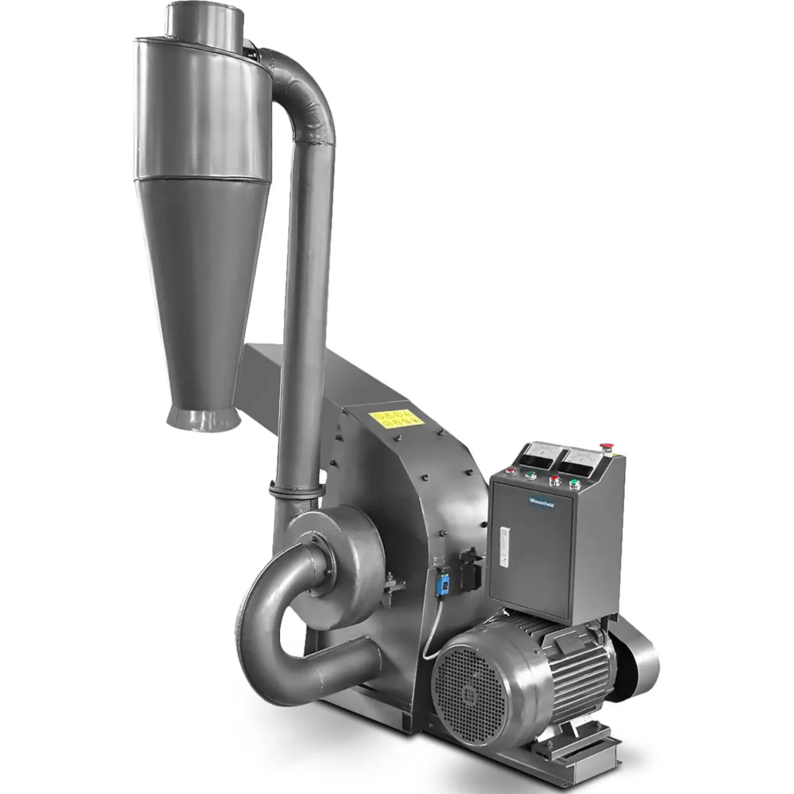 Maszyna charakteryzuje się stabilną konstrukcją oraz dużym zbiornikiem, co ułatwia obsługę i pozwala na przetwarzanie dużych ilości materiału. Gotowy przemiał jest wydobywany za pomocą cyklonu, co zwiększa efektywność pracy.