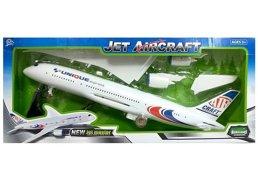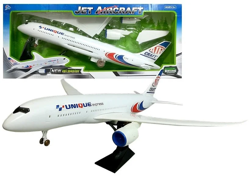 Samolot pasażerski z napędem, dźwiękami i światłami.