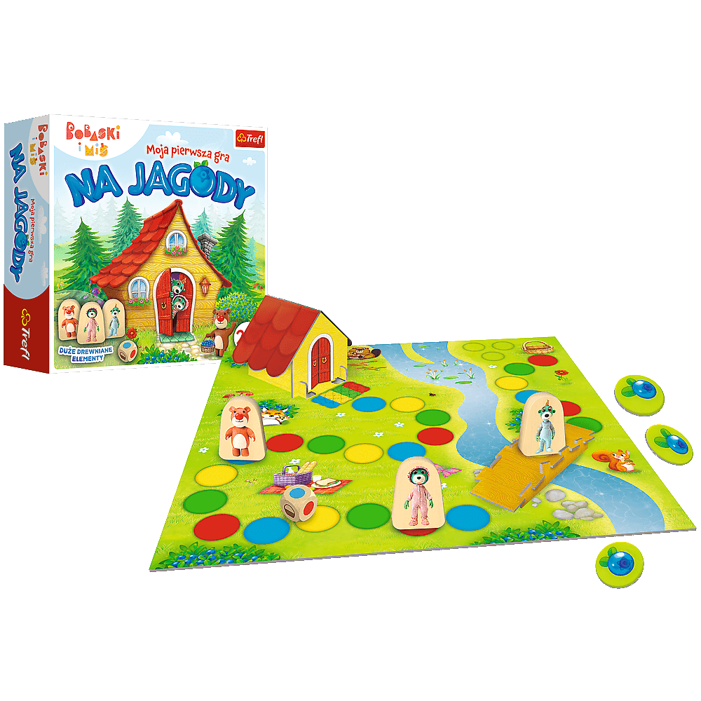Trefl Na Jagody Moja Pierwsza Gra Planszowa z Bohaterami Bajki Rodzina Treflików.Na Jagody Moja Pierwsza Gra to gra edukacyjna oparta na wspólnej zabawie z ulubionymi bohaterami bajki Bobaski i Miś z kultowej serii Rodzina Treflików. Gotowi na leśną przygodę? Dołączcie do emocjonującej zabawy w miłym towarzystwie! Wraz z Rodziną Treflików udajcie się na wyprawę do Chatki Misia. Bądźcie jednak uważni – w grze chodzi o to, aby zebrać jak najwięcej jagód przed dotarciem do celu! No to jak? Ruszamy? Przestrzenna plansza urozmaica grę i pobudza fantazję najmłodszych uczestników. Proste zasady gry oraz duże, drewniane elementy sprawiają, że jest ona doskonałym wyborem na początek przygody z planszówkami.Na Jagody Moja Pierwsza Gra z kolekcji książek i zabawek Dobranoc, Trefliki na noc, stworzona została we współpracy ze specjalistkami od snu. Kolekcja bazuje na metodzie, która krok po kroku układa cały wieczór w szereg pozytywnych czynności. Poprzez rozwijającą zabawę pozwala dzieciom nabrać prawidłowych nawyków związanych ze snem. Graj i słuchaj bajek – kod do odsłuchania bajek w opakowaniu. Dzięki kolekcji każdy wieczór może mieć szczęśliwe, senne zakończenie! Trefl Na Jagody Moja Pierwsza Gra Planszowa z Bohaterami Bajki Rodzina Treflików dla Dzieci Powyżej 3 Lat.Produkt z serii zabawek i gier ze świata „Bobaski i Miś” – animowanego serialu dla dzieci. „Rodzina Treflików” to polska produkcja, tworzona metodą poklatkową w gdyńskim Studio Trefl. Serial jest emitowany w stacjach telewizyjnych w kraju i za granicą. Ulubione postaci z bajki w łatwy sposób wprowadzą Twoje dziecko w świat gier planszowych.Cechy Gry:• Gra Rodzinna, Klasyczna• Proste zasady• Duże, bezpieczne dla dzieci elementy• Idealna dla dzieci powyżej 2 roku życiaPoznaj Gry Trefl i podziel się radością z rozgrywki.Gry planszowe to doskonały prezent z okazji urodzin, Dnia Dziecka lub pod choinkę. Świetnie sprawdzą się podczas spotkania towarzyskiego oraz chwil spędzanych w gronie rodzinnym. Zawartość Pudełka:• Przestrzenna plansza• 3 drewniane pionki.• Duża, drewniana kostka• 16 żetonów jagód• InstrukcjaWymiary pudełka: 260x260x80Ilość Graczy: 2 -4Średni czas rozgrywki: 10 -15 minWiek: 2,5+