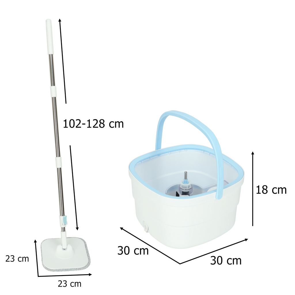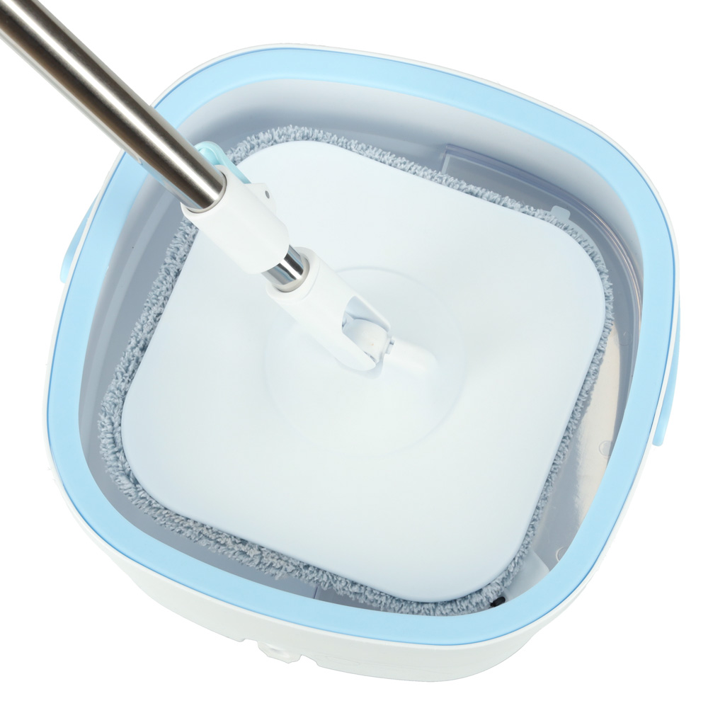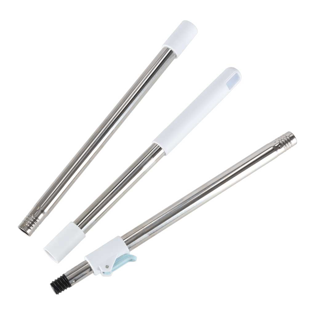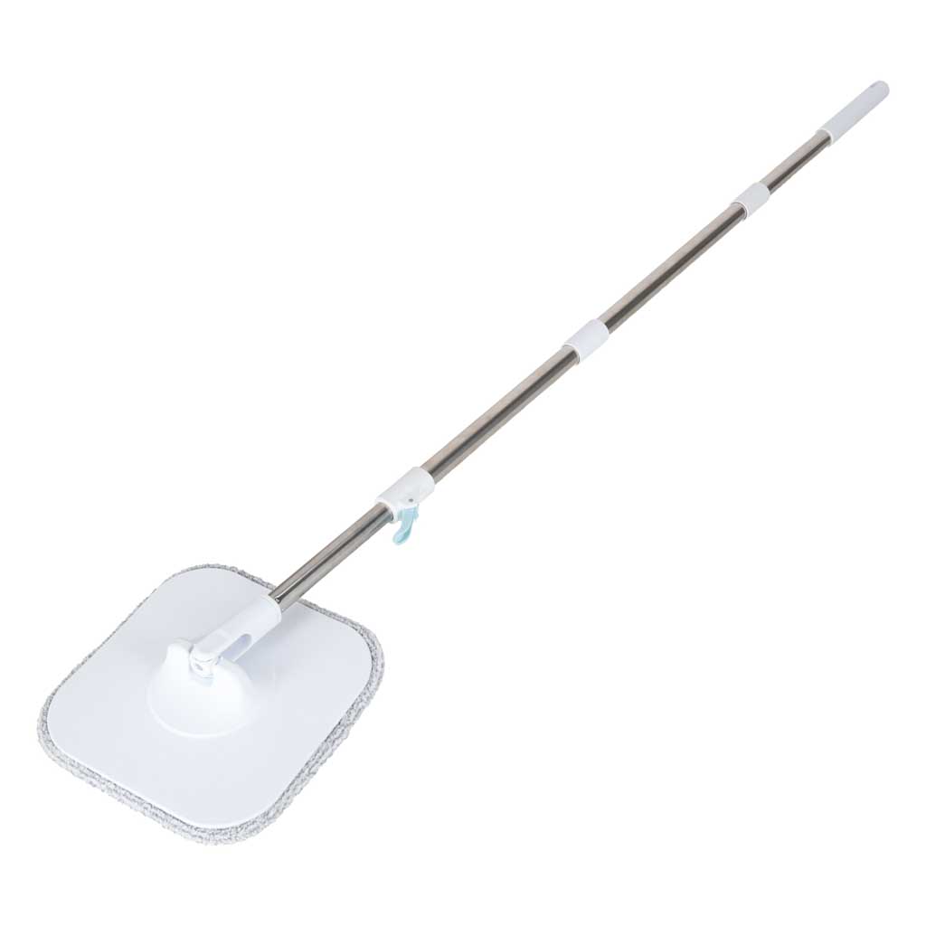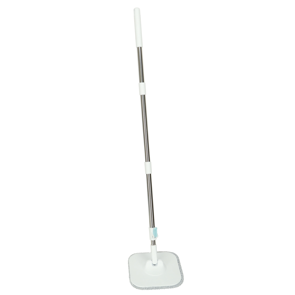 Mop obrotowy ma teleskopowy drążek z lekkiego aluminium, co zapewnia jego wytrzymałość i komfort użytkowania. Regulowana długość umożliwia dostosowanie go do indywidualnych potrzeb. Nakładka z mikrofibry skutecznie zbiera brud i kurz, nie pozostawiając smug. Mocowanie na rzep gwarantuje stabilność, a końcówkę można prać i stosować wielokrotnie. W zestawie znajdują się dwie nakładki czyszczące, co dodatkowo wydłuża żywotność produktu.