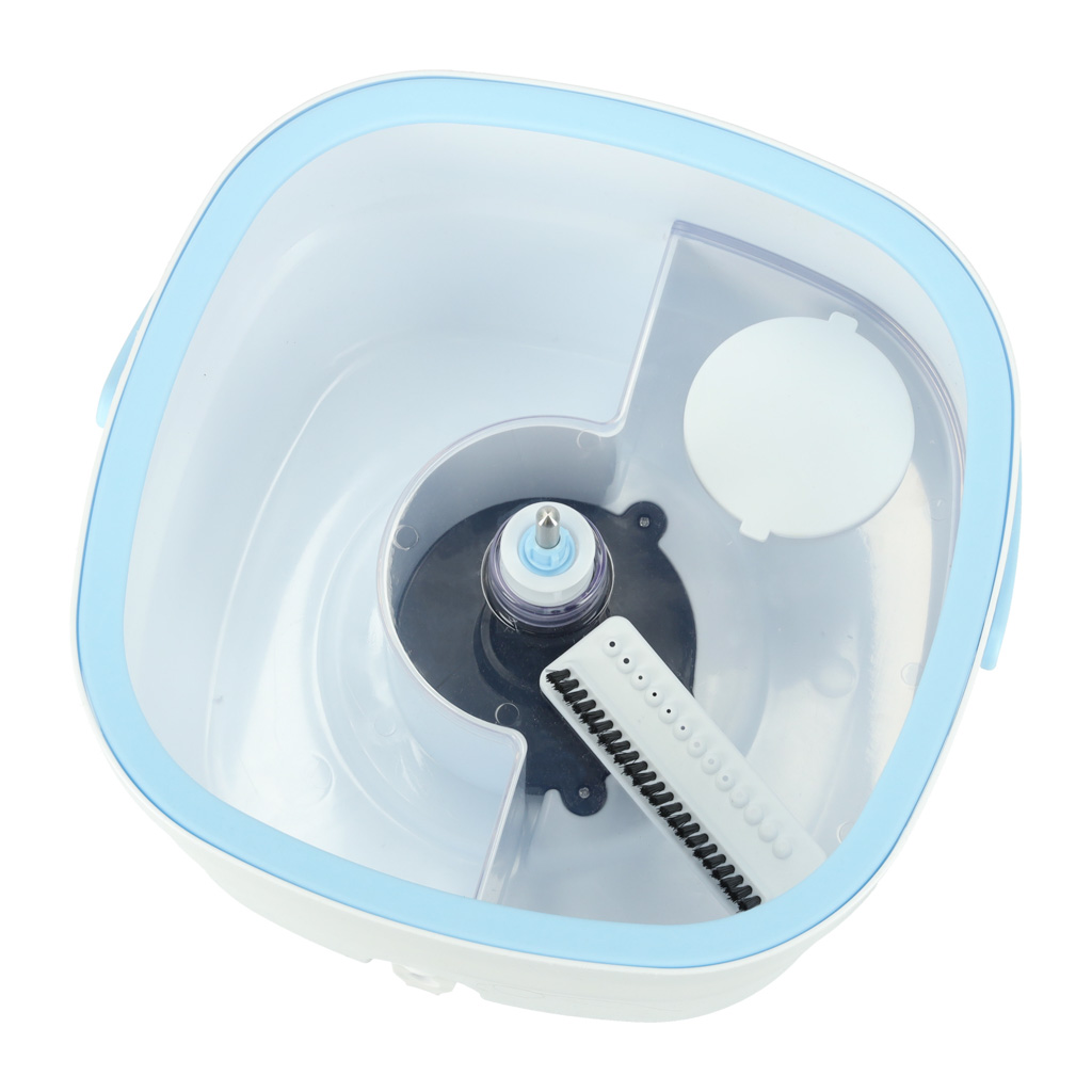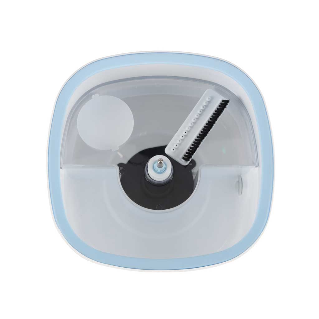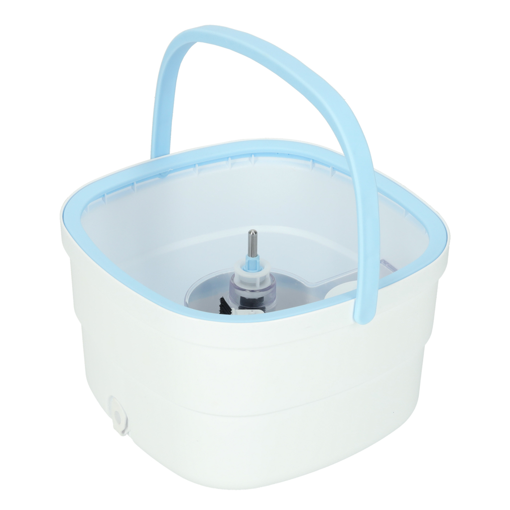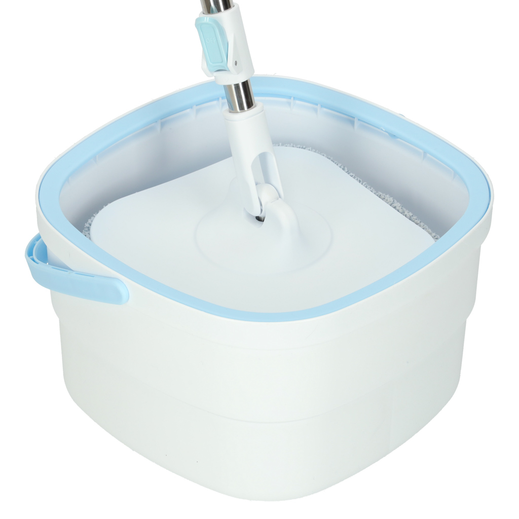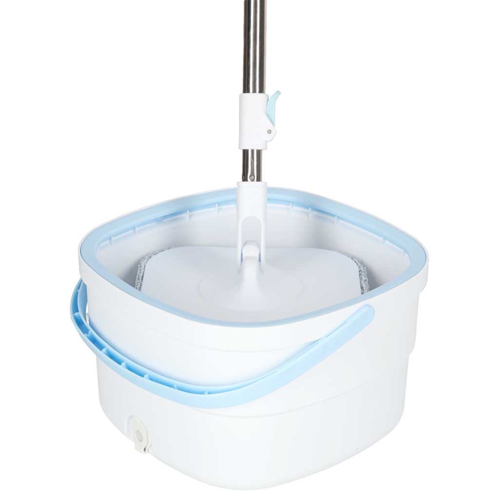 Mop wyposażony jest w innowacyjny obrotowy system odsączania Roll & Up, który zapewnia błyskawiczne i efektywne odsączanie wody. Wiadro z dwukomorowym systemem skutecznie zapobiega ponownemu wymieszaniu się zanieczyszczonej wody, a korek ułatwia szybkie opróżnianie pojemnika. To sprawia, że mycie podłóg jest bardziej higieniczne i komfortowe.