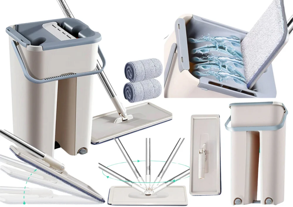 Mop z Wiadrem Dwukomorowym to innowacyjne narzędzie, które zapewnia komfortowe i higieniczne sprzątanie. Dzięki płaskiej głowicy mopa, która dociera do trudno dostępnych miejsc – takich jak narożniki, przestrzenie pod meblami i wzdłuż listew przypodłogowych – sprzątanie staje się łatwe, szybkie i dokładne. Wyposażony w dwukomorowe wiadro, oddziela czystą wodę od brudnej, co zwiększa poziom higieny i komfortu bez konieczności moczenia rąk.