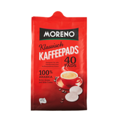 Odkryj wyjątkowy smak kawy Moreno Klassisch w padach. To 100% Arabica, która zachwyca delikatnym aromatem oraz smakiem Crema. Każda filiżanka jest zwieńczona puszystą pianką, co sprawia, że picie tej kawy to prawdziwa przyjemność.