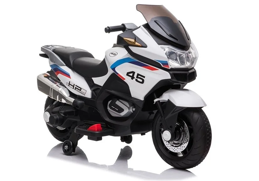 Sportowa wersja akumulatorowego ścigacza przyciąga wzrok zarówno niecodzienną kolorystyką, jak i konstrukcją oraz zdobieniami charakterystycznymi dla pełnowymiarowych pojazdów. Na nadwoziu wykonanym z trwałego i solidnego plastiku ABS umieszczono oznaczenia modelu, sprawiające, że pojazd wygląda bardzo nowocześnie i oryginalnie. Doznanie to podnosi imitacja chromowanych elementów przypominających układ wydechowy, co z pewnością zrobi wrażenie na każdym dziecku. Wysoce istotnym rozwiązaniem są także kółka boczne, ułatwiające prowadzenie pojazdu dzieciom mającym problem z utrzymaniem równowagi podczas jazdy. Zabawa jeszcze nigdy nie była tak prosta!