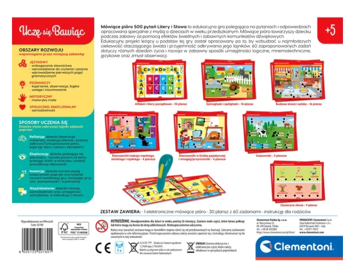 Mówiące Pióro 500 Pytań Litery i Słowa Uczę się Bawiąc Język Polski Clementoni 50780