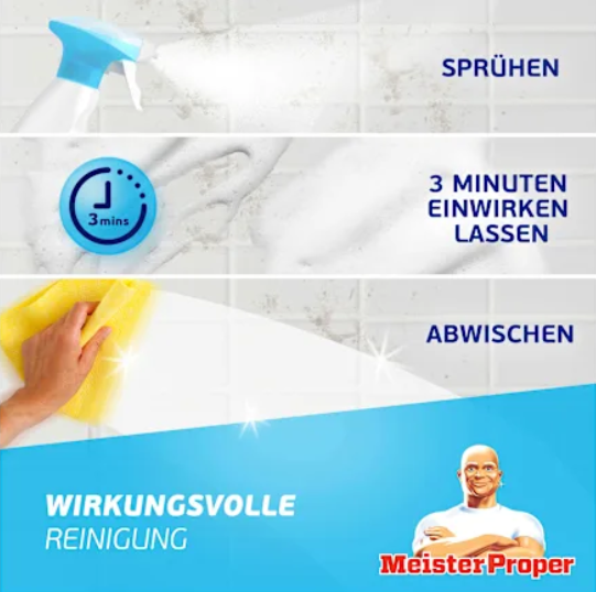 Spray jest łatwy w użyciu i bezpieczny dla większości powierzchni – wystarczy spryskać, odczekać kilka sekund i przetrzeć. Postaw na jakość i efektywność – wybierz Meister Proper Badreiniger i ciesz się higieniczną czystością każdego dnia. Zamów już teraz i przekonaj się, jak szybko Twoja łazienka może lśnić!