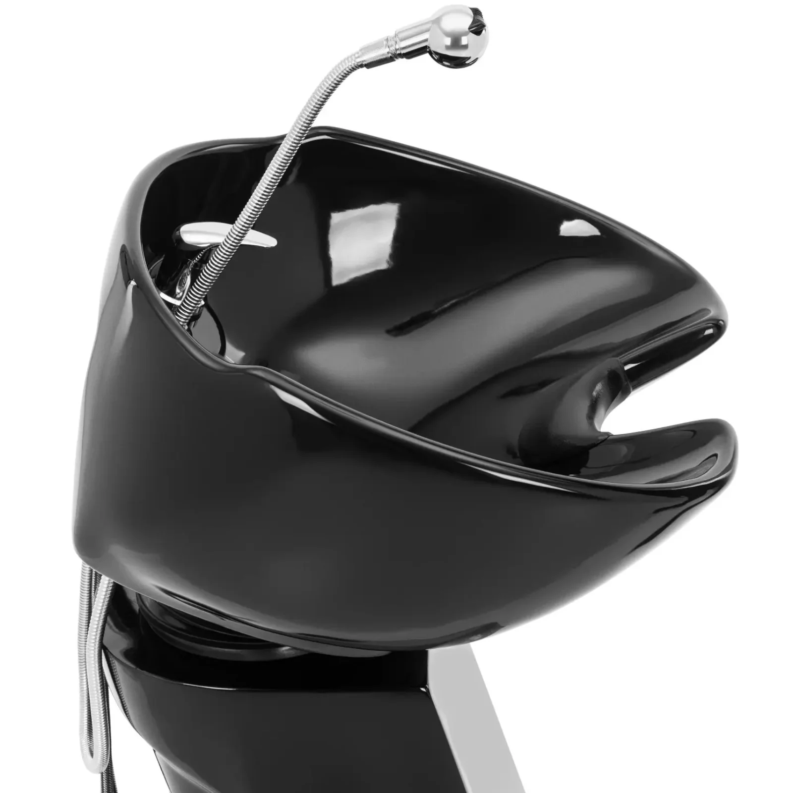 Myjka fryzjerska uchylna wolnostojąca 35 - 40 stopni - czarna to niezwykle funkcjonalny i elegancki element wyposażenia każdego salonu fryzjerskiego. Dzięki swojemu ergonomicznemu designowi oraz wysokiej jakości materiałom, model ten zapewnia komfort zarówno dla fryzjerów, jak i dla klientów, co czyni mycie włosów przyjemnością.