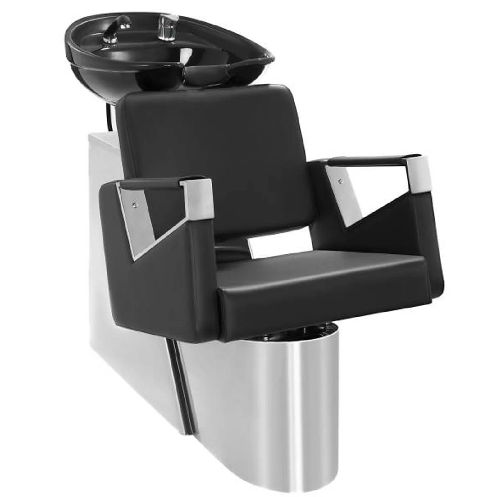 Myjka fryzjerska Physa Sorrent to funkcjonalne rozwiązanie dla każdego salonu fryzjerskiego. Dzięki połączeniu umywalki i fotela, użytkownik może cieszyć się wygodnym myciem głowy w komfortowej pozycji. Użycie czarnej ekoskóry ułatwia dbanie o czystość, a solidna konstrukcja z chromowanymi elementami zapewnia długotrwałe użytkowanie.