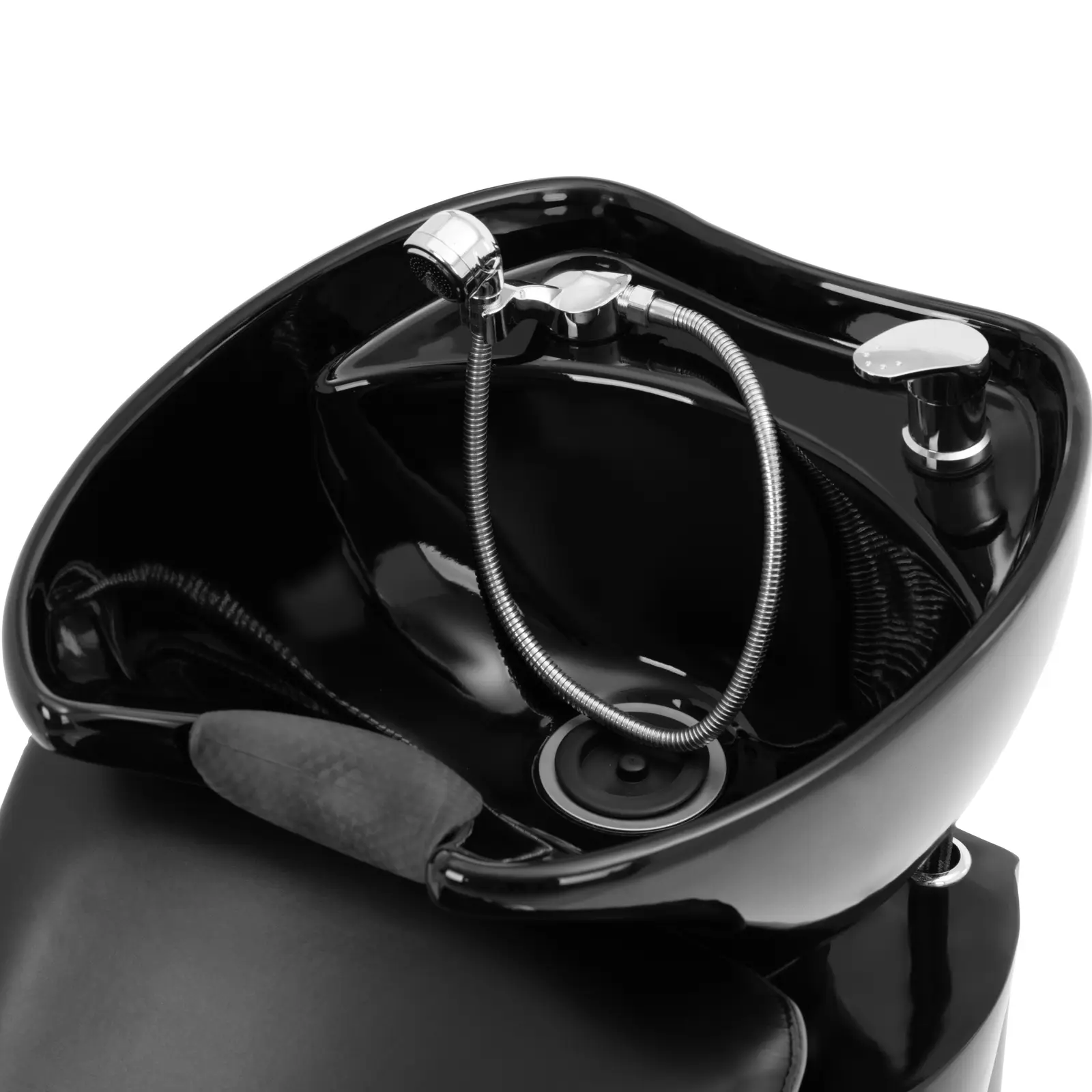 Myjka umywalka fryzjerska z fotelem Physa ACERRA czarna to idealne rozwiązanie dla profesjonalnych salonów fryzjerskich. Oferuje wyjątkową funkcjonalność oraz komfort dzięki zintegrowanej umywalce ceramicznej i wygodnemu prysznicowi. Silikonowe wgłębienie pod szyję zapewnia wygodę podczas mycia włosów. Umywalka ma wymiary 600 x 505 mm, co zapewnia wystarczająco dużo miejsca na komfortowe mycie włosów. Uchylny kąt umywalki wynosi 30°, co zwiększa jej wszechstronność. Elastyczny wąż prysznicowy o długości 470 mm można łatwo dostosować do indywidualnych potrzeb, a siłę natrysku reguluje się za pomocą jednouchwytowej baterii. Stabilna podstawa łączy zlew z fotelem fryzjerskim, co zapewnia solidność i elegancki wygląd. Szerokie, dobrze wyprofilowane siedzisko fotela umożliwia klientom pełen relaks. Dodatkowe praktyczne rozwiązania, takie jak odpływ z wyjmowanym sitkiem, ułatwiają utrzymanie czystości. Parametry techniczne: - Wymiary (DxSxW): 110 x 55 x 106 cm - Waga: 60 kg - Materiał: PVC, Stal stopowa, Stal chromowana, Włókno szklane, Ceramika, Skóra PU - Kolor: czarny - Uchylny: tak - Długość odpływu: 250 mm - Długość przewodu wody: 700 mm - Średnica odpływu: 40 mm - Średnica przyłącza wody: 20 mm - Użyteczna długość węża prysznicowego: 470 mm W zestawie znajduje się myjka fryzjerska, prysznic oraz bateria.