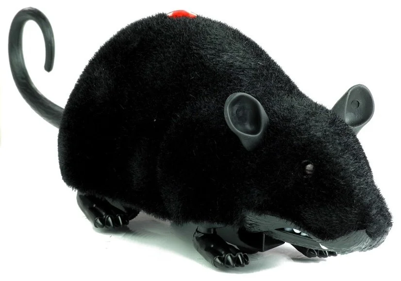 Zabawkowa mysz w kolorze czarnym sterowana jest pilotem na podczerwień, co pozwala na zabawę pełną psikusów w całym mieszkaniu. Zwierzak posiada kółka w jego spodniej części, dzięki czemu porusza się bardzo sprawnie i bezszelestnie po różnych gładkich nawierzchniach. Mysz jeździ do przodu i do tyłu, poruszając przy tym swoimi stópkami oraz ogonkiem.