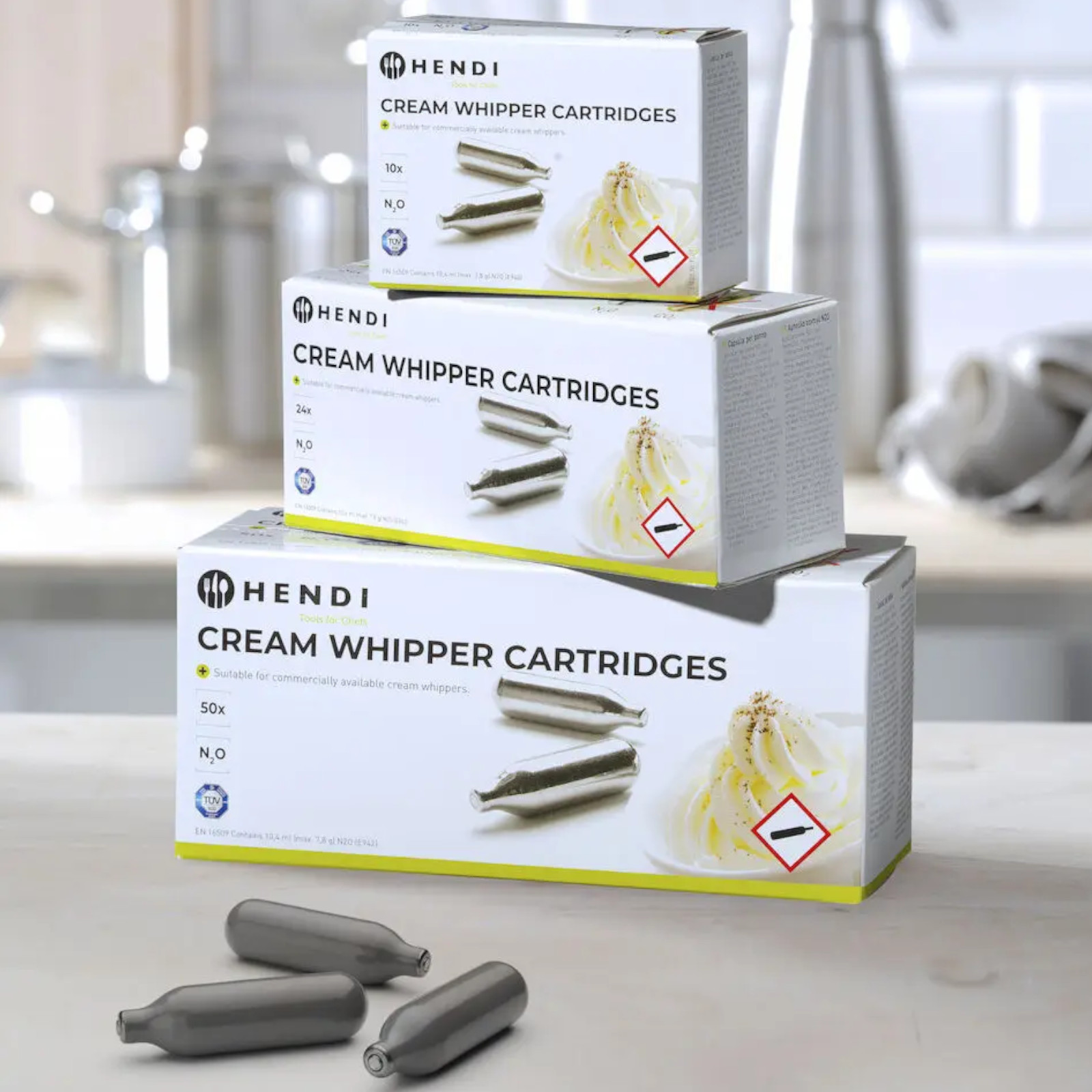Waga produktu: 0.5000 kg. Naboje Hendi to niezastąpiony dodatek do Twojego syfonu, gwarantujący doskonałe rezultaty w przygotowywaniu bitej śmietany.