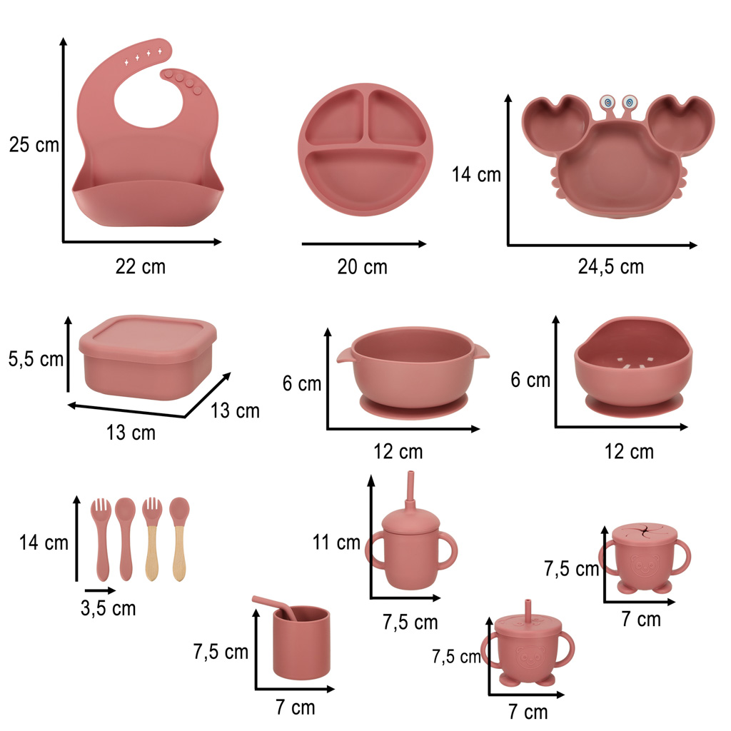 Wszystkie naczynia wykonane są z bezpiecznego silikonu spożywczego, co oznacza, że są wolne od szkodliwych substancji. To zapewnia bezpieczeństwo Twojego dziecka podczas jedzenia. Zestaw został zaprojektowany z myślą o potrzebach najmłodszych, co ułatwia im naukę samodzielnego jedzenia.