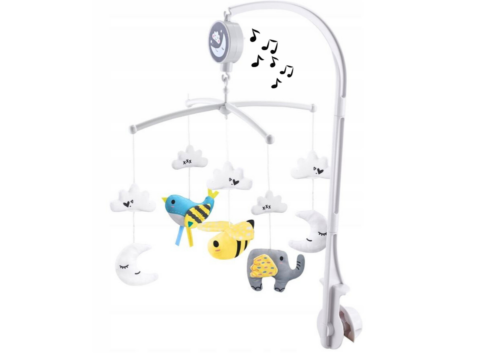 Zabawka będzie mieć pozytywny wpływ na rozwój maluszka. Poprzez obserwację jednostajnego powolnego ruchu zawieszek, dziecko doskonali zmysł wzroku i rozwija naturalną ciekawość świata. Melodia pozytywnie wpływa na rozwój słuchu, działa relaksacyjnie, maluszek będzie czuł się bezpiecznie.