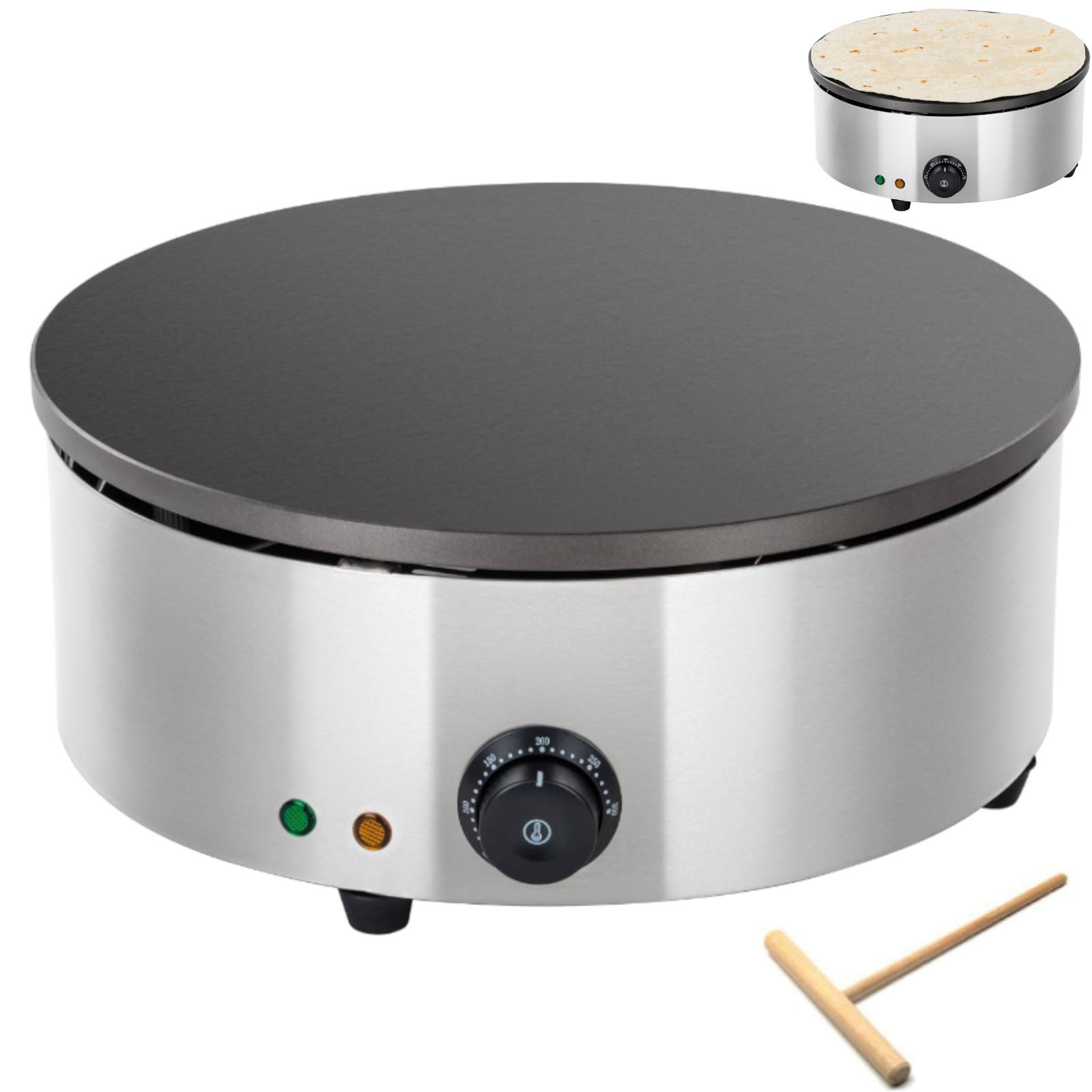 Profesjonalna naleśnikarka o dużej mocy 3000W to idealne rozwiązanie dla każdej kuchni. Dzięki specjalnej powłoce na płycie grzewczej przygotowanie pulchnych naleśników jest szybkie i bezproblemowe. Obudowa ze stali nierdzewnej zapewnia trwałość, a żeliwna płyta pokryta teflonem eliminuje problemy z przywieraniem ciasta.