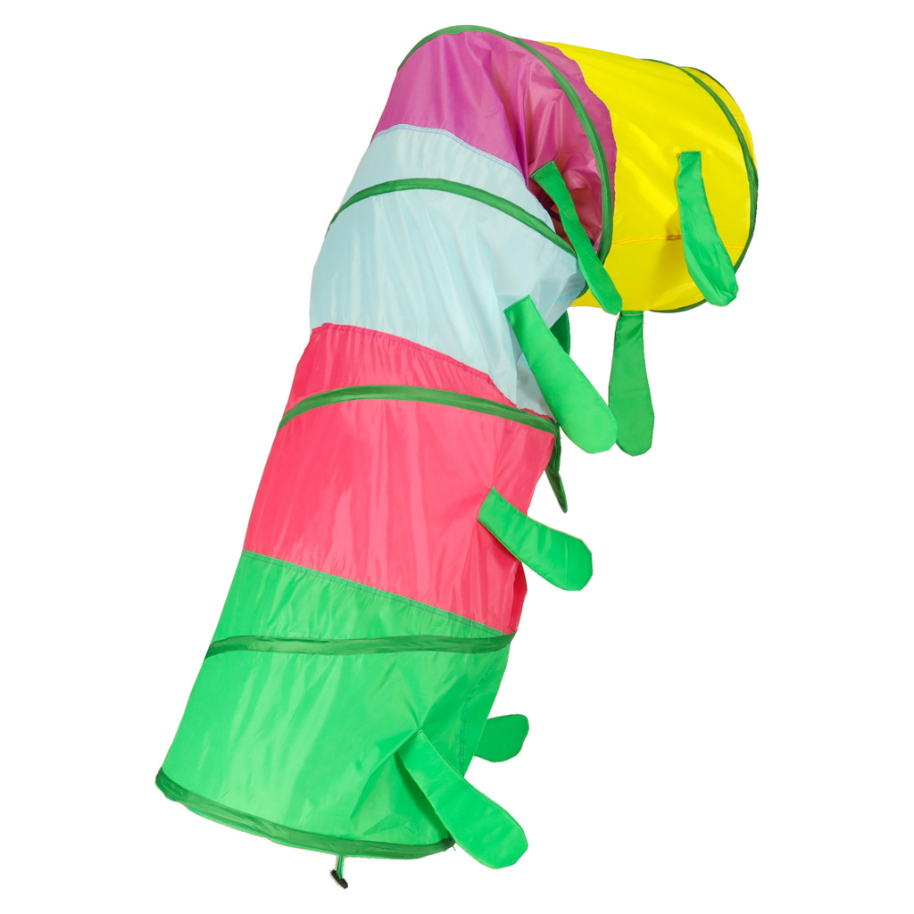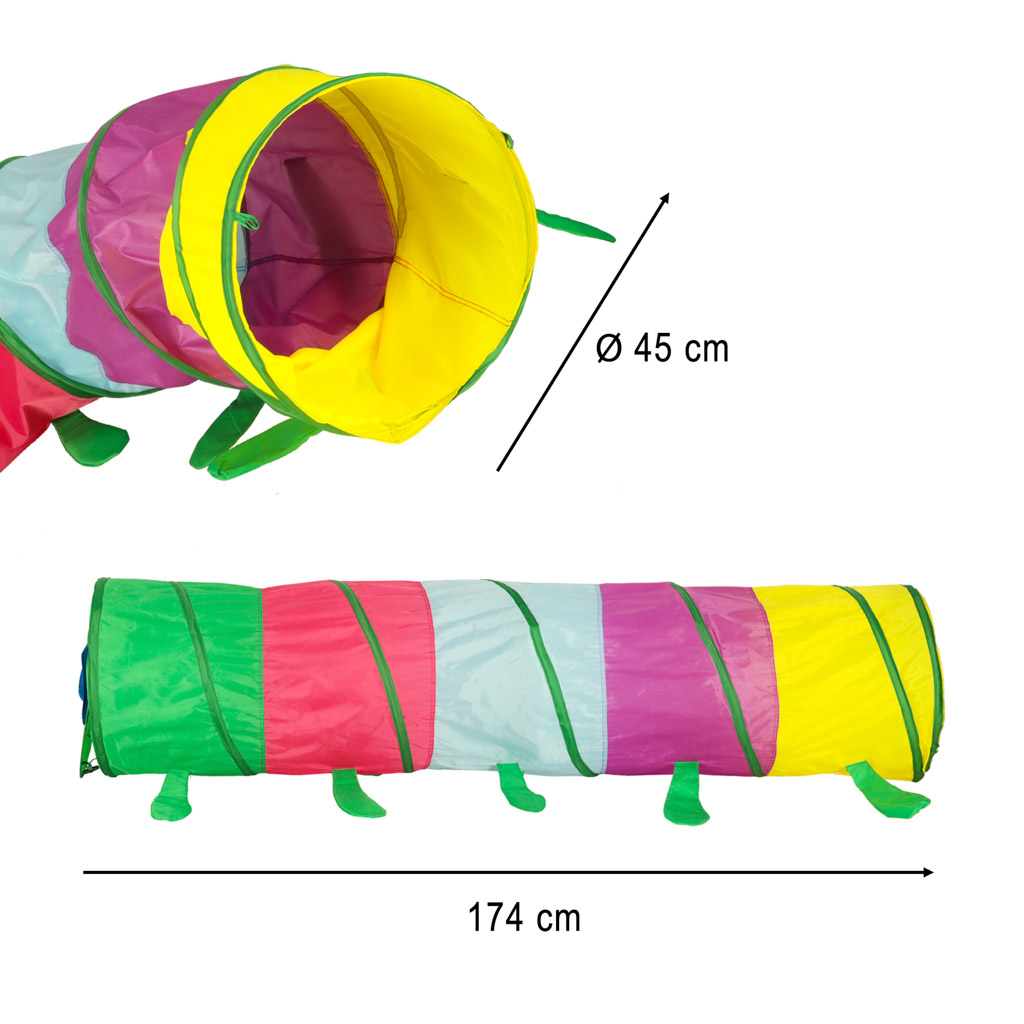 Gąsienicowy tunel to świetna zabawa dla najmłodszych. Wesoły design z kolorową gąsienicą zachęca do kreatywnej zabawy. Idealny do użycia w domu, szkole czy ogrodzie, co czyni go uniwersalnym elementem zabaw. Po zabawie można go łatwo złożyć i schować w praktycznym pokrowcu.