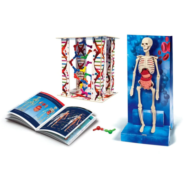 Fantastyczna zabawka, która zaznajamia w prosty i bezpośredni sposób z anatomią człowieka dzięki realistycznemu modelowi ludzkiego ciała do złożenia ze szkieletem i organami. Trójwymiarowy model podwójnej helisy DNA. Po wykonaniu wszystkich zadań zabawa może być kontynuowana dzieki aplikacji internetowej, do której możesz uzyskać dostęp poprzez stronę Clementoni, znajdziesz na niej wiele wizualizacji 3D i kilka poglądowych animacji.