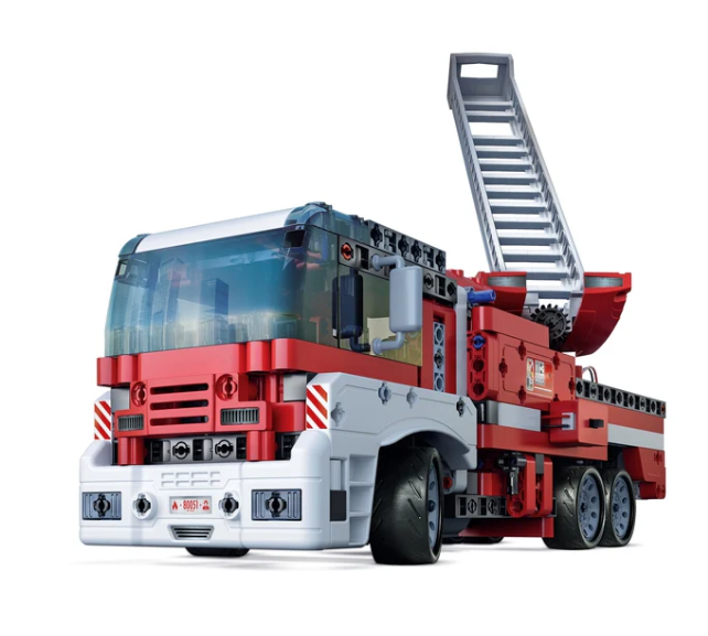 Drabinę strażacką można ręcznie podnosić i opuszczać, podczas gdy silnik uruchamia obrót drabiny o 360° i napędza koła. Wyrusz na niesamowite misje ratunkowe!