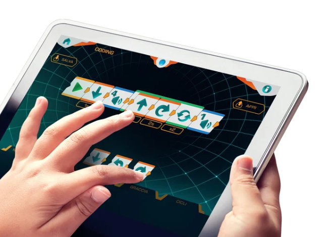 Specjalna aplikacja proponuje różne funkcje, dzięki którym dziecko poznaje zasady kodowania.