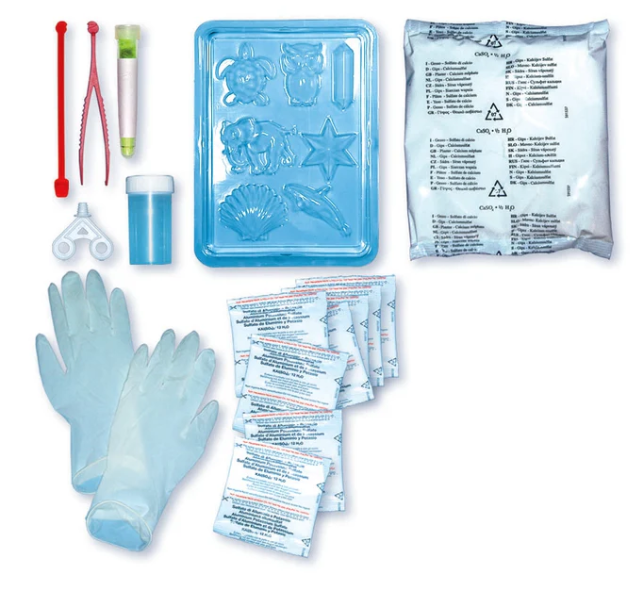 Zawiera: gips, formy, torebki ałunu i siarczan potasu do tworzenia pięknych kryształów.