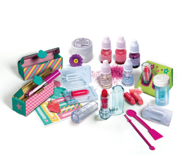 Zawiera wszystko, co jest potrzebne do łatwego i przyjemnego wykonania szminek i błyszczyków do ust, w tym przyrządy naukowe!