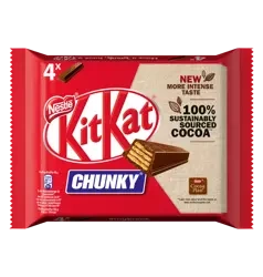 KitKat Chunky to idealna przekąska dla fanów słodkości. Chrupiący wafelek w połączeniu z mleczną czekoladą tworzy wyjątkowy smak, który zaspokoi Twoje słodkie zachcianki. To doskonały wybór na każdą okazję – do pracy, szkoły czy w podróży.