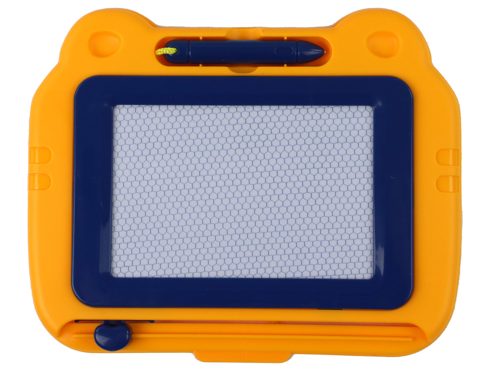 Nasz niebieski pchacz chodzik to nie tylko pomoc w nauce pierwszych kroków, ale także interaktywna tablica edukacyjna. Z przodu chodzika znajduje się panel, na którym umieszczona jest tablica z rysikiem. Tablicę można łatwo zdjąć z chodzika i używać osobno, co pozwala dziecku rozwijać umiejętności rysowania i pisania w sposób zabawny i angażujący.