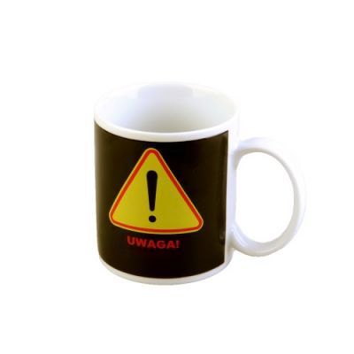 Współpracownikom i kolegom z akademika często bardzo bliska jest idea wspólnej własności, więc ochoczo sięgają po twój ulubiony kubek, oczywiście bez pytania cię o zgodę. Jeśli masz dosyć takiej sytuacji, możesz temu zapobiec, i to w sposób całkowicie pokojowy! Wystarczy, że kupisz kubek… Nie jest to zwyczajny kubek – pusty ma napis „Uwaga”, a gdyby ktoś miał problem z czytaniem ze zrozumieniem, towarzyszy mu czytelny, międzynarodowy znak drogowy. Ostrzeżenie to powinno zniechęcić potencjalnych „pożyczaczy”. Jednak gdyby to nie wystarczyło, na biurowych recydywistów czeka niespodzianka… Gdy amator cudzych naczyń napełni kubek gorącym napojem, jego oczom ukaże się komunikat: „Uwaga! Nie zalewać wrzątkiem!”. Zaskoczony delikwent na pewno z niepokojem będzie oczekiwał na konsekwencje swego postępku. Co prawda kubek nie wybuchnie mu w rękach ani nie uruchomi żadnego alarmu, ale na pewno da mu nauczkę na przyszłość!
