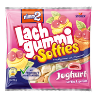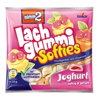 Nimm2 Softies Jogurt to pyszna guma owocowa, która łączy smaki świeżych owoców z korzyściami zdrowotnymi jogurtu. Oferuje różnorodność smaków, co czyni ją idealną przekąską dla całej rodziny. Każda guma ma miękką skorupę i jeszcze bardziej miękki rdzeń, co zapewnia wyjątkowe doznania smakowe.