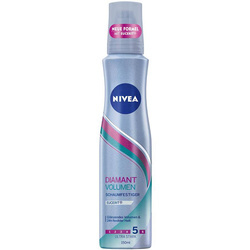 Pianka do włosów Nivea Diamant Volumen 5 Ultra Stark o pojemności 150 ml, wzbogacona w pantenol i witaminę B3, oferuje doskonałą pielęgnację podczas stylizacji. Dzięki swojej lekkiej, lekko mieniącej się konsystencji, nadaje włosom objętość, blask oraz piękne wykończenie. Formuła pianki nie tylko zwiększa objętość, ale również wzmacnia i chroni włosy, nie powodując ich wysuszenia. Ciesz się pięknie ułożonymi włosami bez obaw o ich kondycję.