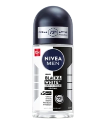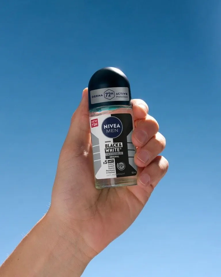 Antyperspirant Nivea Men Black & White Invisible Original zapewnia skuteczną ochronę przed potem i nieprzyjemnym zapachem, jednocześnie pielęgnując skórę. Formuła 5w1 chroni przed żółtymi plamami na białych ubraniach, białymi śladami na czarnych tkaninach, a także podrażnieniami skóry. Niezawodna ochrona przez 72 godziny pozwala czuć się pewnie i świeżo przez cały dzień, nawet w najbardziej wymagających warunkach.