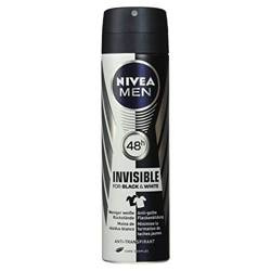 Nivea Men Black&White Invisible Original to antyperspirant w sprayu o pojemności 150 ml, który zapewnia skuteczną ochronę przed wilgocią i nieprzyjemnym zapachem przez 48 godzin. Jego formuła została opracowana tak, aby nie pozostawiać śladów na ciemnych ubraniach oraz zapobiegać powstawaniu żółtych plam na jasnych tkaninach.