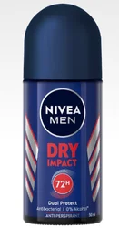 Odkryj męski antyperspirant w kulce NIVEA MEN Dry Impact, stworzony z myślą o aktywnych mężczyznach. Dzięki formule Dual Protect zapewnia niezawodną ochronę przed poceniem przez 72 godziny. Ciesz się komfortem suchości oraz długotrwałą świeżością bez nieprzyjemnego zapachu.