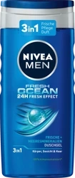 Nivea Men Fresh Ocean to doskonałe połączenie efektywnej pielęgnacji i ożywiającego doświadczenia pod prysznicem. Zainspirowany siłą oceanu, żel pod prysznic z morskimi minerałami to rewitalizująca formuła, której skuteczność obejmuje pielęgnację ciała, twarzy i włosów. Bez mikroplastików i sztucznych polimerów, nasz produkt jest nie tylko przyjazny dla skóry, ale także 99% biodegradowalny, dbając o środowisko.