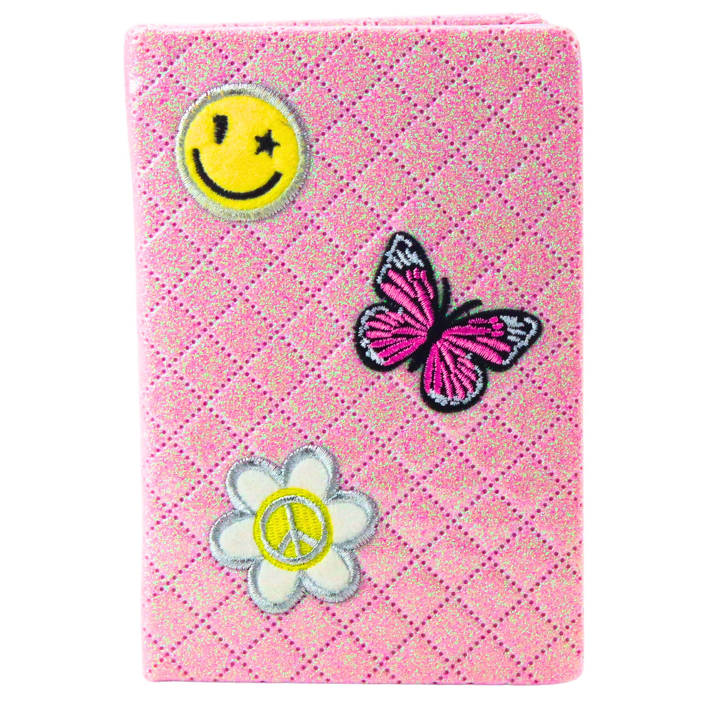 Stylowy notatnik w formacie zbliżonym do B6 z brokatową, różowy okładką to praktyczne i estetyczne narzędzie do codziennych zapisków. Powierzchnia okładki pokryta została śliskim, laminowanym materiałem, dzięki czemu brokat nie osypuje się i pozostaje trwały nawet przy intensywnym użytkowaniu. Dodatkową ozdobą są kolorowe naszywki w kształcie gwiazdki, uśmiechniętej buźki i błyskawicy, które nadają całości nowoczesnego, młodzieżowego charakteru.