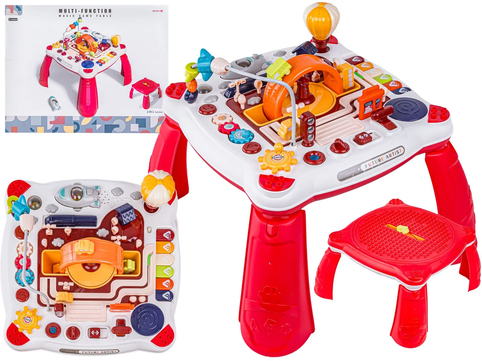 Edukacyjny Interaktywny Stolik Dla Dzieci 2w1 POJAZDY Pianinko Rakieta Akcesoria Czerwony