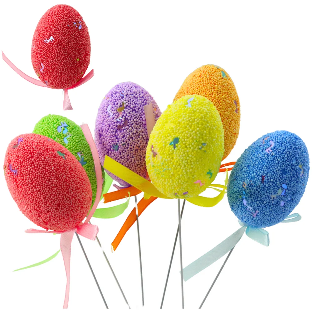Jajka Wielkanocne Na Piku Druciku Kolorowe Nutki Wstążka Ozdoba 6szt