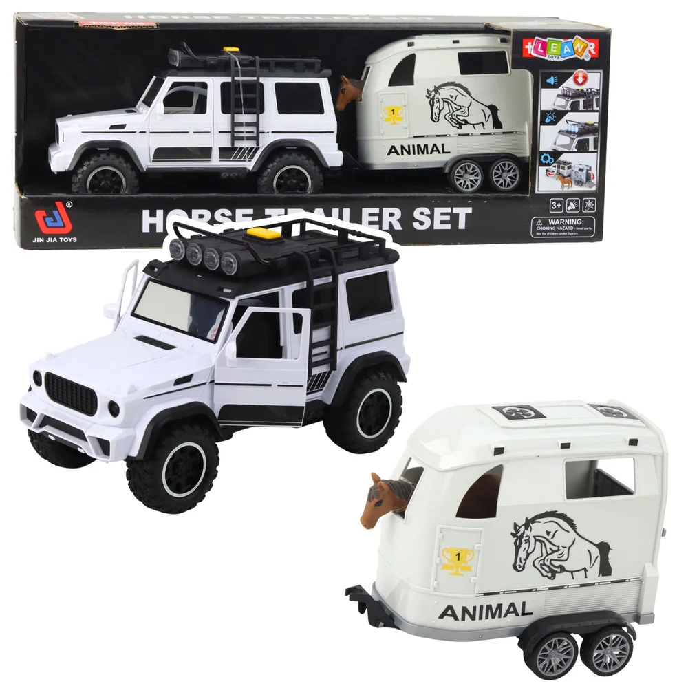 Samochód Terenowy Z Przyczepą Do Przewozu Koni Figurka Światła Dźwięki