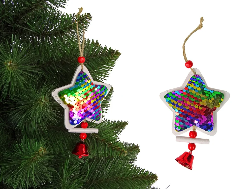 Świąteczna Gwiazdka z Cekinami Dzwoneczek Ozdoba Na Choinkę