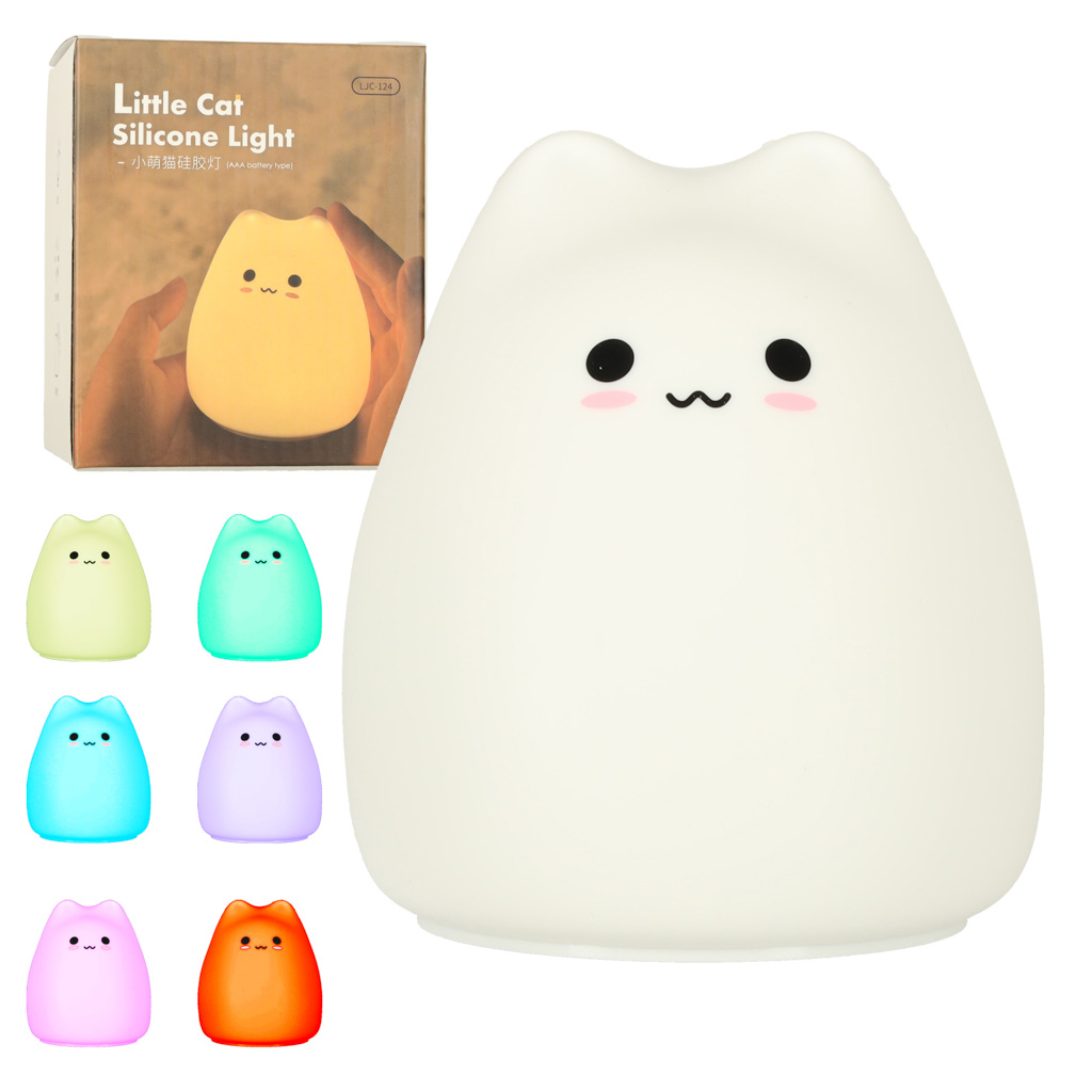 Lampka nocna dla dzieci silikonowa dotykowa miękka RGB LED biała kotek