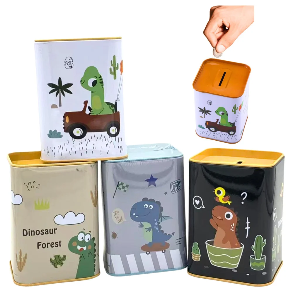 Skarbonka Z Dinozaurami Metalowa Kolorowa 13 x 8cm